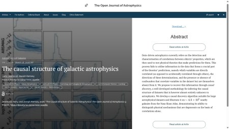 The first paper to report this week is our 500th publication. The title is “The causal structure of galactic astrophysics” and the authors are Harry Desmond (U. Portsmouth, UK) and Joseph Ramsey (Carnegie Mellon U., USA). This paper was published on Monday March 16th 2026 in the folder Astrophysics of Galaxies. It proposes using causal discovery, a method for inferring data structure, to better utilize information in astrophysical data, demonstrated through an algorithm applied to a large galaxy dataset.