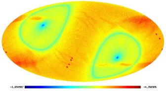 Posted in Cosmic Anomalies, The Universe and Stuff with tags Antony Lewis, beam asymmetry, Planck, WMAP on October 22, 2009 by telescoperYesterday we had a nice seminar here by Antony Lewis who is currently at Cambridge, but will be on his way to Sussex in the New Year to take up a lectureship there. I thought I’d put a brief post up here so I can add it to my collection of items concerning cosmic anomalies. I admit that I had missed the paper he talked about (by himself and Duncan Hanson) when it came out on the ArXiv last month, so I’m very glad his visit drew this to my attention.