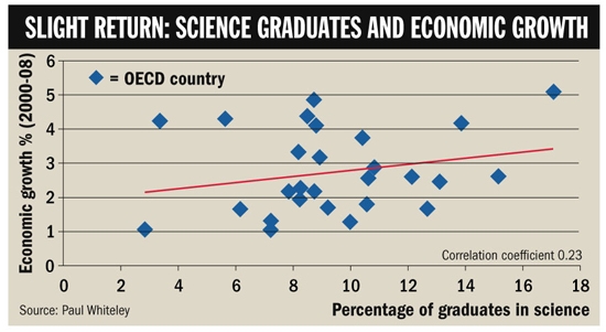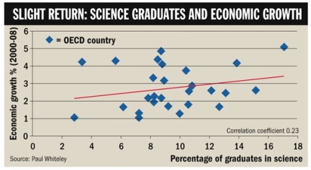 Eventually the community of physicists settled on a party line that most still stick to: that the wave-function controls the probability of finding an electron at some position when a measurement is made. In fact the mathematical description of wave phenomena favoured by physicists involves complex numbers, so at each point in space at time