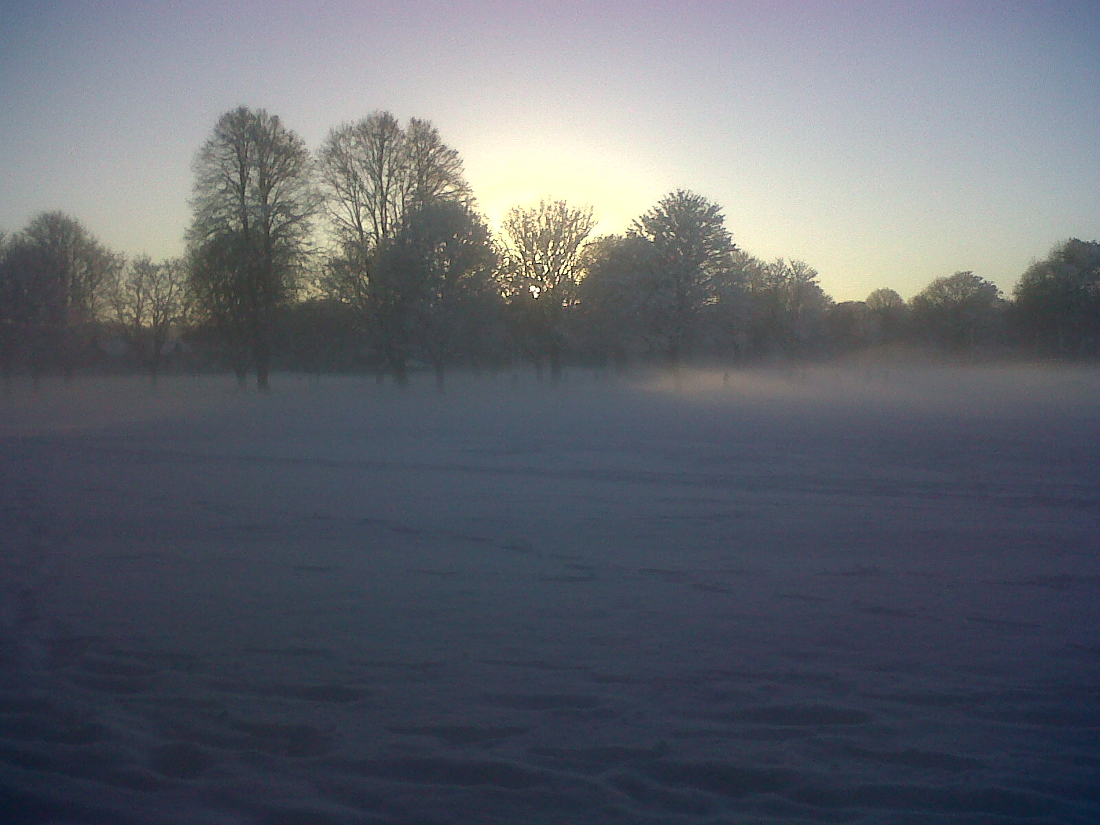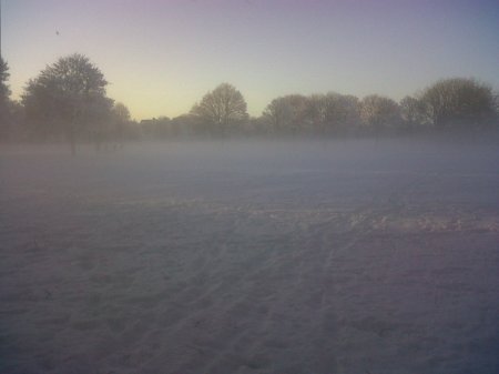 Just back from a shopping expedition during which I walked through the snowbound Pontcanna Fields. Fog was rising above the snow just as the sun was setting, creating some stunning lighting effects. Unfortunately I only had my Blackberry with me so I couldn’t take any really high quality pics, but these should give you an idea.