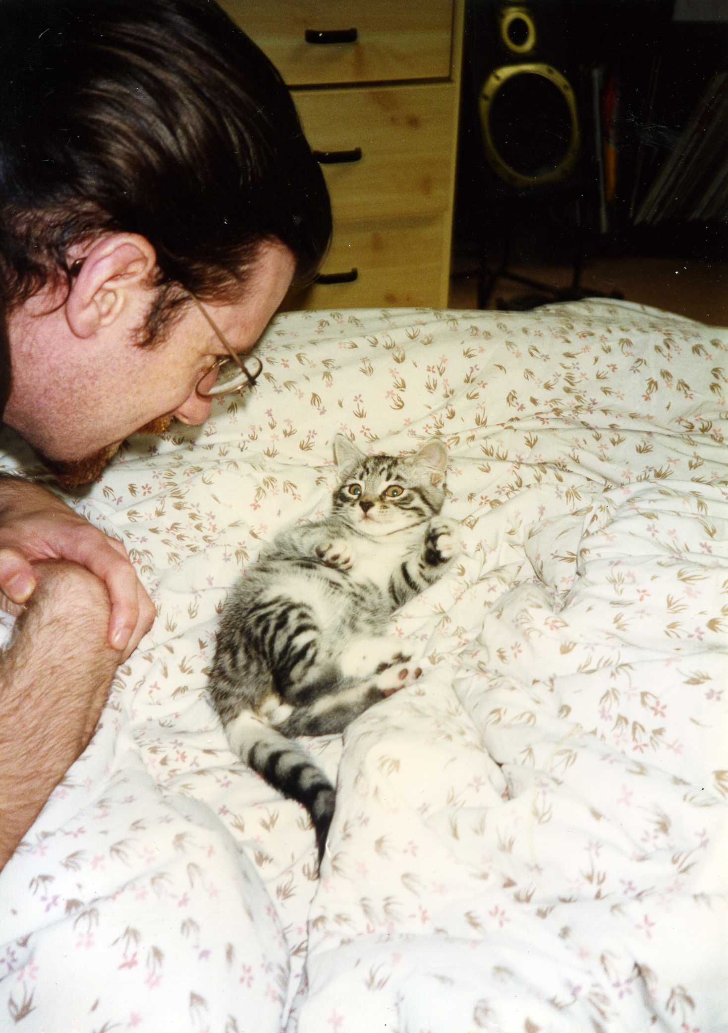 Posted in Columbo with tags cats, Columbo on January 24, 2011 by telescoperNo time for a proper post today, so I thought I’d put up a gratuitously cute picture of my old moggy Columbo, taken when he was a youngster – about 16¾ years ago. Feel free to say “awwww…”. Oh, and the beardy weirdy in the picture is me, also in a younger incarnation.