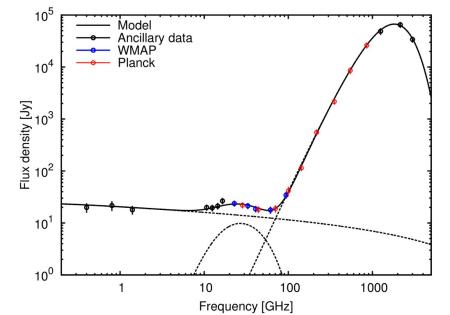 Here’s another, more recent, example. A couple of weeks ago, a clutch of early release papers from the Planck satellite came out; I blogged about them here. Among these results were some interesting new insights concerning the nature of the Anomalous Microwave Emission (AME) from the Milky Way; the subject of an excellent presentation by Clive Dickinson at the conference where the results were announced.