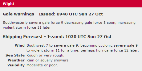 Another storm is forecast to arrive tomorrow; here is the Shipping Forecast for sea area Wight which, includes the town of Brighton and areas to the West.