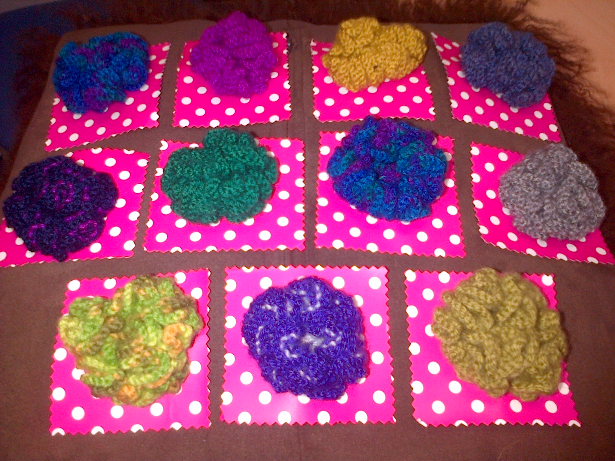 I’m sure you have all seen a knitted pseudosphere, but this is a particularly fine collection made by the excellent Miss Lemon and briefly displayed in my office this morning.