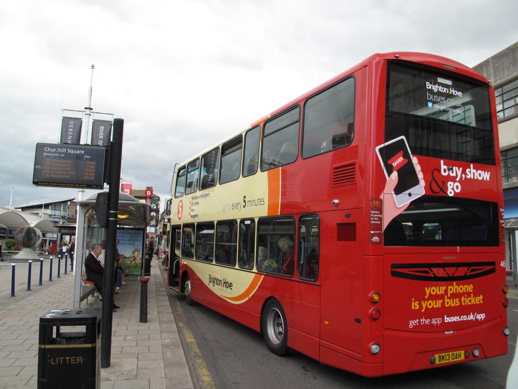 By sheer coincidence when I got to the bus stop to catch a bus to campus this morning there was a chap from Brighton and Hove buses there. He was explaining what sometimes goes wrong with the real time boards to a lady, so I joined in the conversation and asked him if he knew why Falmer is so unreliable. He was happy to oblige. It turns out that the way the real-time boards work depends on each bus having a GPS system that communicates to a central computer via a radio link. If the radio link drops out for some reason – as it apparently does quite often up at Falmer (mobile phone connectivity is poor here also) – the system looks up the expected time of the bus after the one that it has lost contact with. Thus it is that a bus can apparently be “due” and then apparently go back in time. Also, if a bus has to divert from the route programmed into the GPS tracker then it is also removed from the real-time boards.