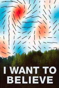 It was an interesting little workshop, with lots of time for discussions, but lurking in the background of course was the question mark over BICEP2. Many theorists have clearly been beavering away on models which assume that BICEP2 has measured primordial gravitational waves and I suspect most of them really want the result to be correct. When I posted a message on Twitter about this, Ian Harrison posted this homage to a famous poster for the TV series The X-files. There’s more than a little truth in the comparison!