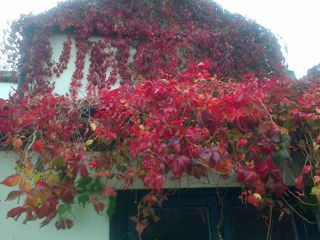 Here in Cardiff the weather is still warm, but the leaves are turning brown and starting to fall. Conkers too. And, most spectacularly, the Virginia Creeper growing at the back of my house has turned blood red. It does look pretty, but I’m sure it’s not good for the gutters or the chimney stack above..
