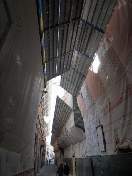 This is to stop falling masonry. It’s quite claustrophobic in these narrow streets underneath!