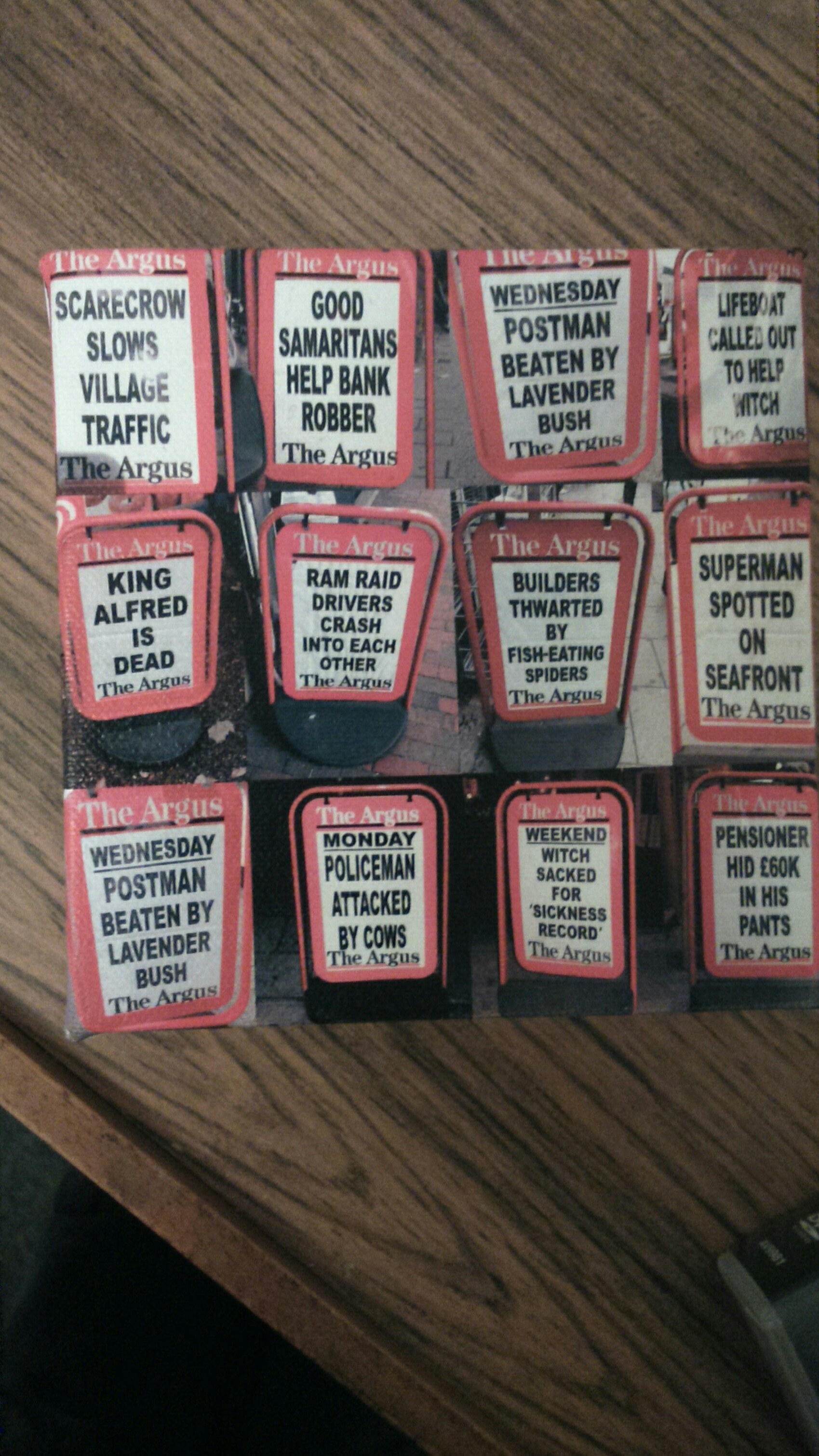 Anyway I couldn’t resist sharing this lovely Christmas present I got from the inestimable Dorothy Lamb featuringy suitably dotty headlines from the Brighton Evening Argus…