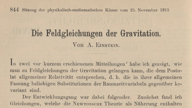 Many people have been celebrating the centenary of the birth of Einstein’s Theory of General Relativity this year, but it’s not obvious precisely what date to select. I’ve decided to go for today, partly because the News on BBC Radio 3 did when I work up this morning, but also because there is a well-known publication that mentions that date: