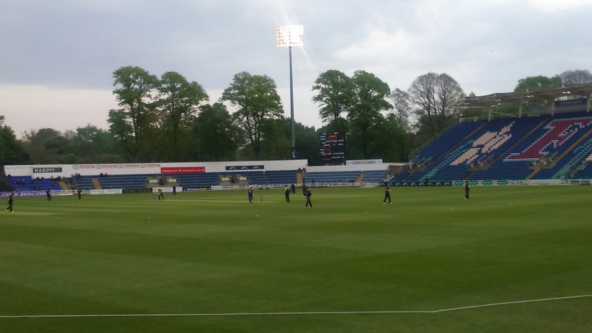 This morning I headed down to Sophia Gardens to watch a limited-overs match between Glamorgan and Surrey, the first game I’ve ever seen in the Royal London One-day Cup, a 50-overs a side competition.