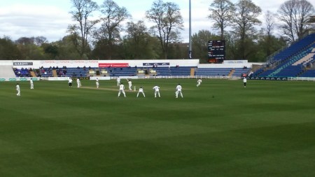 And so it came to pass that this morning I found myself watching the first County Championship game of the season in Cardiff, between Glamorgan and Worcestershire. Glamorgan lost their first match of the season (away against Northamptonshire) inside two days, by an innings and 22 runs, so the home fans were hoping for a stronger performance in this match.