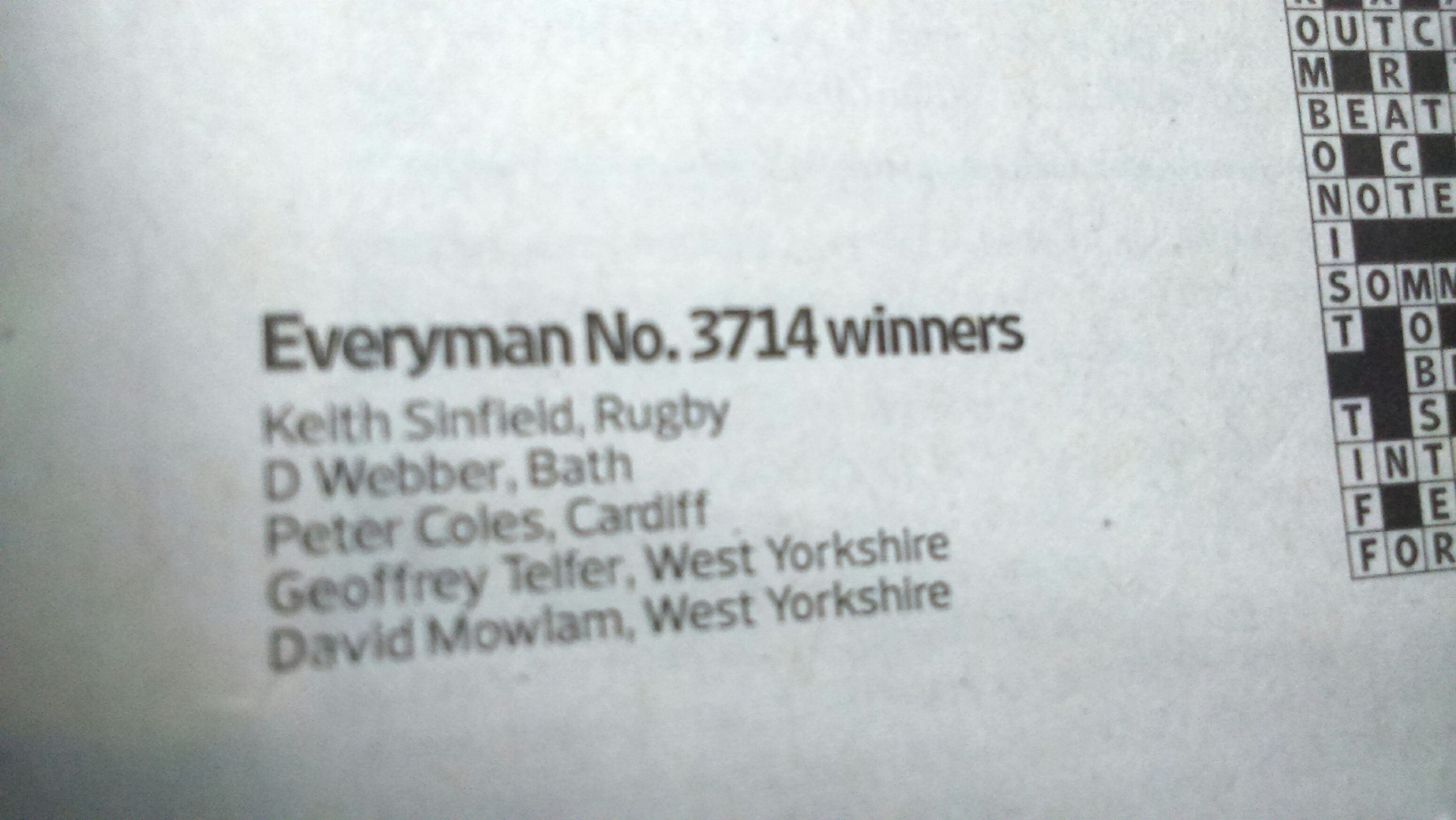Well, this year has been rounded off nicely with a win in the Everyman Crossword Competition: