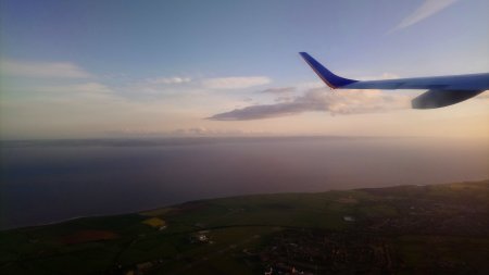 The picture was taken shortly after takeoff from Cardiff Airport, with South Wales underneath and Devon in the distance.