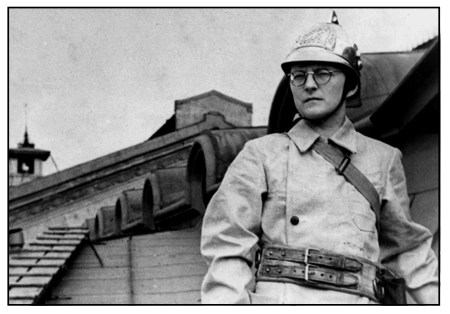Shostakovich in a fireman’s uniform in Leningrad, 1941
