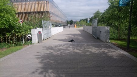In the summer season, there being fewer people around, Maynooth University Library Cat has descended from his usual position by the bridge to ground level in order more effectively to intercept passing humans for food and fuss.