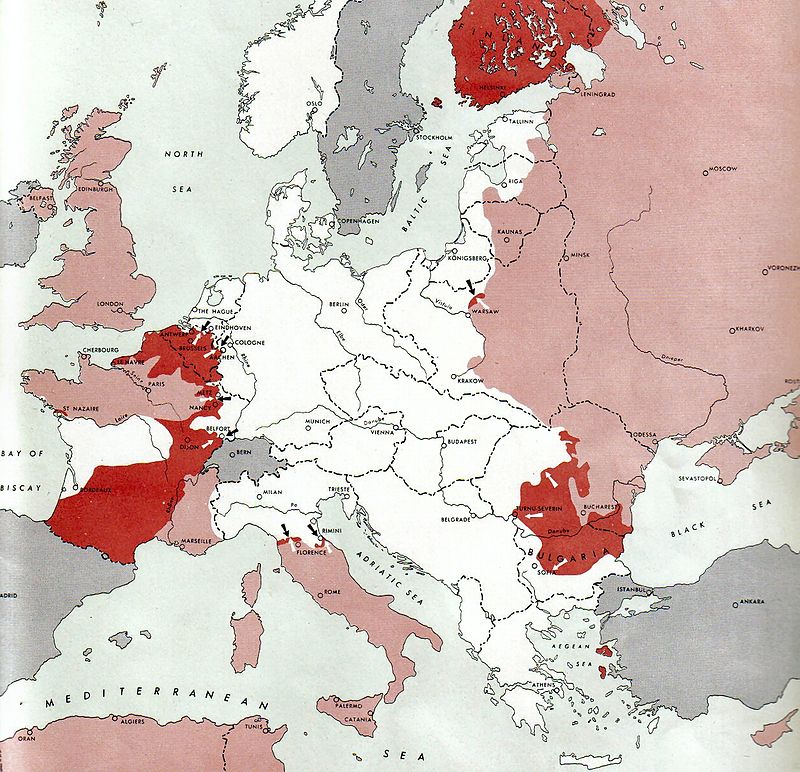 And of course had the Allies succeeded in penetrating into Germany in 1944, the post-war map of Europe would probably have been very different. This is how the front lines were drawn in mid-September 1944, with the Western Front and Eastern Front roughly equidistant from Berlin.