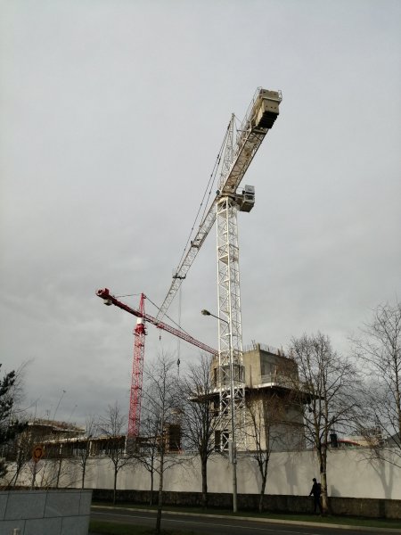 I was quite impressed when I saw a big crane on site a few months ago, but then I realized that it was only there to help put up the much bigger white crane you can see in the middle of the picture!