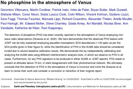 Posted in Astrohype, The Universe and Stuff with tags arXiv:2010.14305, Sofia, Stratospheric Observatory for Infrared Astronomy on October 28, 2020 by telescoperTo continue the ongoing saga of Phosphine in the atmosphere of Venus there’s a very strongly worded paper on the arXiv with the following abstract: