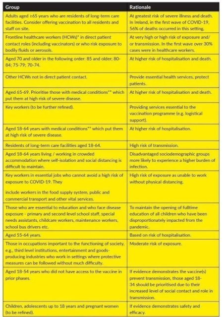 The first is that on Tuesday (yesterday) the Irish Government decided to change the way it vaccinates the rest of the population. The previous plan was rather complicated with a number of groups to be vaccinated in order of priority: