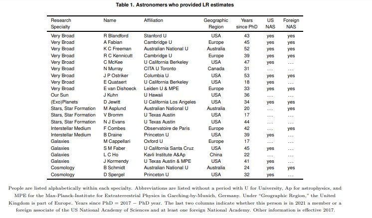 My own opinion is that while citations and other bibliometric indicators do contain some information, they are extremely difficult to apply in the modern era in which so many high-impact results are generated by large international teams. Note also the extreme selectivity of this exercise: just 22 “experienced astronomers” provide the :calibration” which is for faculty in just 17 “highly-ranked” university astronomy departments. No possibility of any bias there, obviously. Subjectivity doesn’t turn into objectivity just because you make it quantitative.