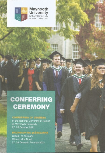 The last conferring ceremony I attended in person was on October 31st 2019. It was while I was en route to give a talk at DIAS that evening after the ceremony that I heard that my Mam had passed away. So much has happened between then and now that it is hard to accept that was only two years ago…