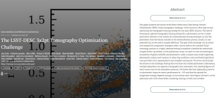 The latest publication is entitled The LSST-DESC 3x2pt Tomography Optimization Challengeand is in the folder marked Instrumentation and Methods for Astrophysics, and is especially relevant for cosmology. The paper is led by Joe Zuntz of the University of Edinburgh, and there are 27 authors altogether, scattered across the globe, representing the LSST Dark Energy Science Collaboration.