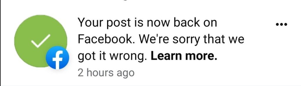 Of course this ban/unban episode is of no consequence. What worries me though is that the ban was imposed immediately, suggesting that somebody (or some AI bot) must be watching everything that gets posted by users; the same entity is presumably also checking the constant stream of bigoted bile, anti-vax misinformation, far-right propaganda, and other hateful lunacies one sees on Fashbook every day and deciding that it’s all perfectly acceptable.