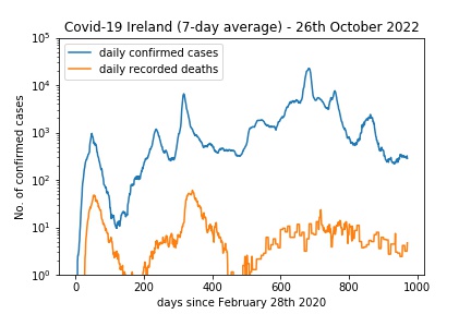 One thing I was a bit worried about this term was that the resumption of in-person teaching would lead to a surge in Covid-19 cases, not only in Maynooth but across the country. However there isn’t any evidence of significant increases in the latest figures (updated weekly nowadays, on Wednesdays):
