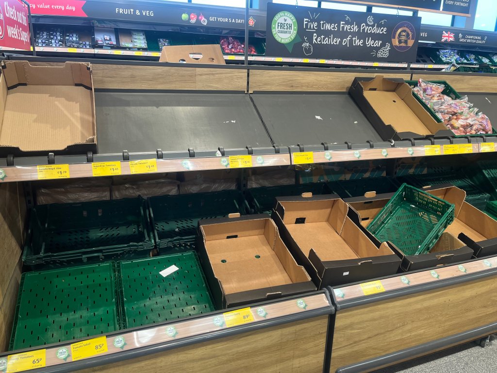 This week my social media timelines have been filled with pictures like this of British supermarket shelves bereft of salad vegetables, especially tomatoes. The UK Government has stated, through its mouthpiece the BBC, that this is due to unseasonably bad weather in Spain and Morocco, although I very much doubt this is the whole story.