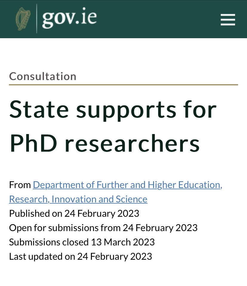 By sheer coincidence, the very same day that I posted a piece in which complained that the issue of PhD stipends for Irish postgraduates had apparently been “kicked into the long grass”, the consultation has at last opened.