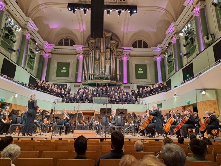 The Bells is in four movements, echoing the four stanzas of the poem, and representing the journey “from childhood to the grave”, the last movement being a Lento subtitled The Mournful Iron Bells. The three soloists sing in one part each; the third movement involves orchestra and chorus only. Ukrainian tenor Valentyn Dytiuk sang in the first movement, Estonian soprano Mirjam Mesak the second and Ukrainian baritone Andrei Bondarenko the fourth. All three soloists were superb but particularly enjoyed the sinewy muscularity of Bondarenko’s baritone which gave a sense of rawness to his performance.