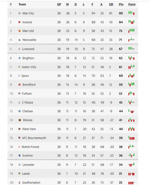 Now all the final results are in and validated the Board can now proceed to the classification of Honours for the 2022/23 Premier League.
