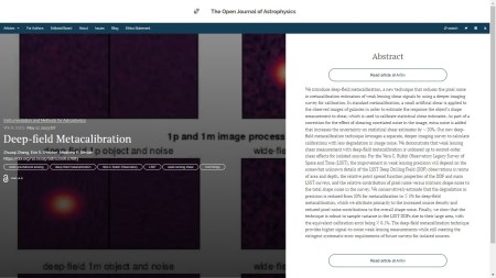 The primary classification for this paper is Instrumentation and Methods for Astrophysics and its title is “Deep-field Metacalibration”. This article describes a technique that reduces the pixel noise in estimators of weak gravitational lensing shear signals by using a deeper imaging survey for calibration.