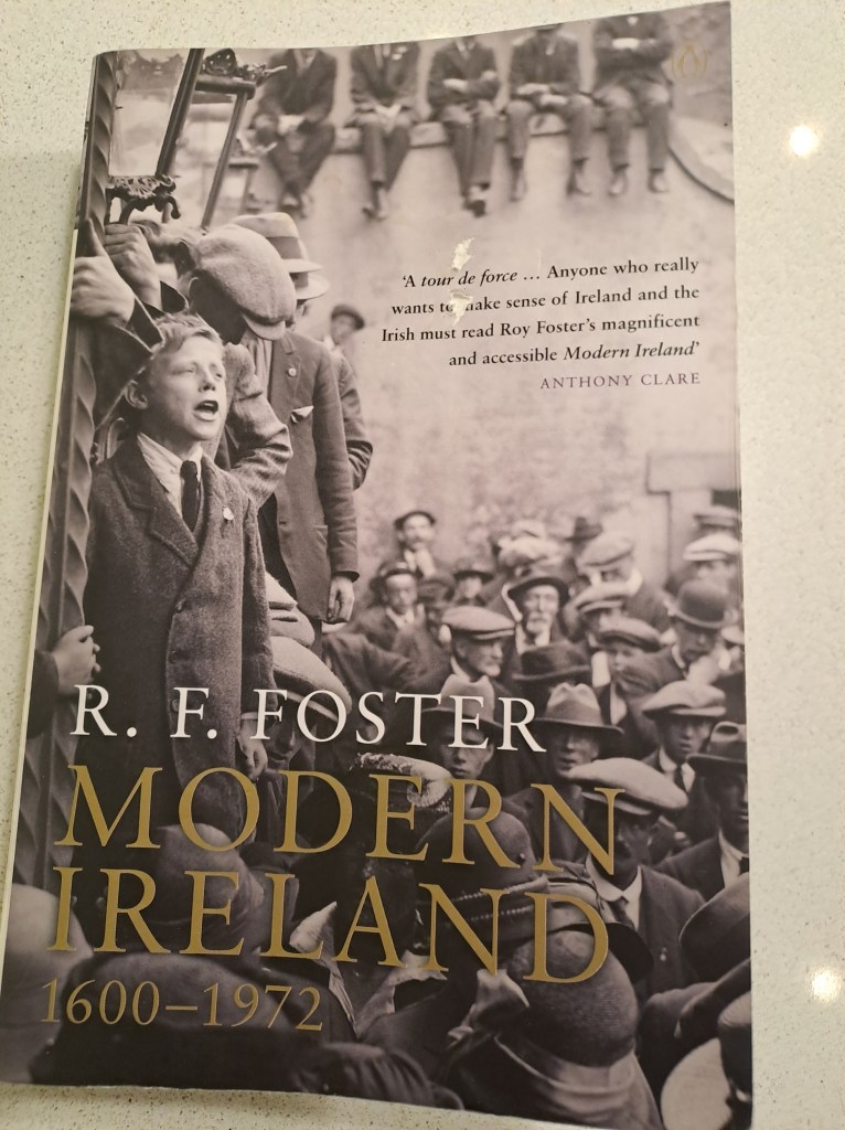 My attempt to catch up with a backlog of reading while on sabbatical has now brought me to Modern Ireland, by R.F. Foster, the paperback version of which, shown above, I bought way back in 2018 but have only just finished reading. In the following I’ll describe the scope of the book and make a few observations.