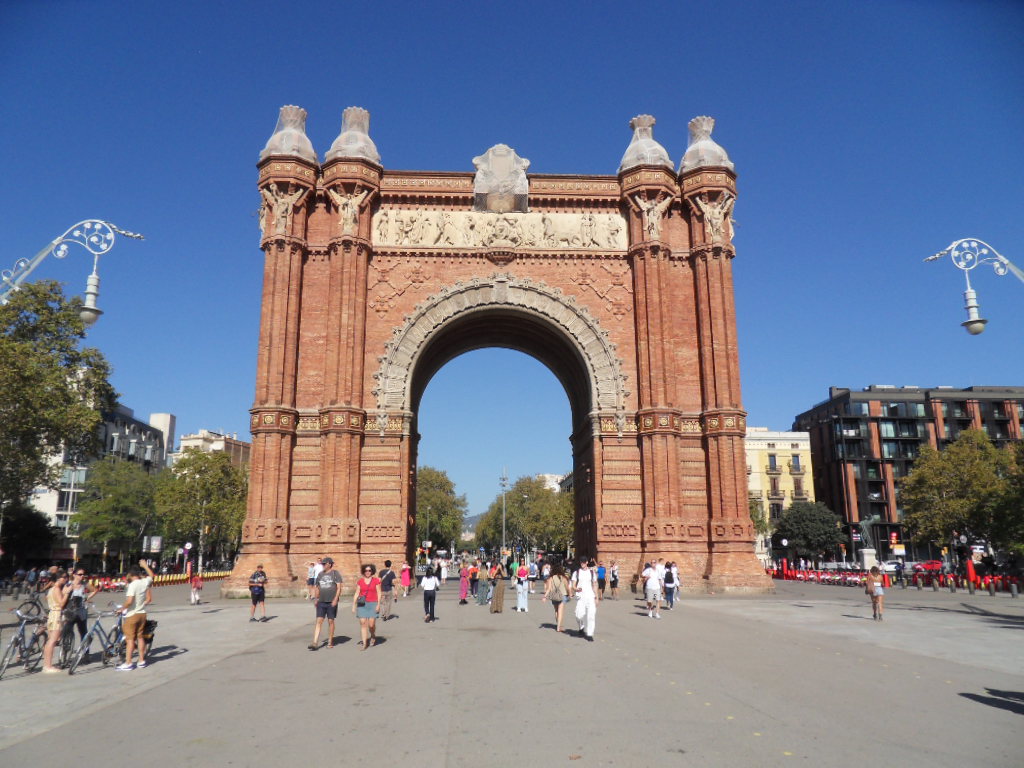 Unlike Napoleon’s Arc de Triomphe (and those of ancient Rome, from which Napoleon got the idea), this Arc(h) does not celebrate military victory, but was the entrance to a World Fair that was held in Barcelona in 1888. To me it looks rather Indian.