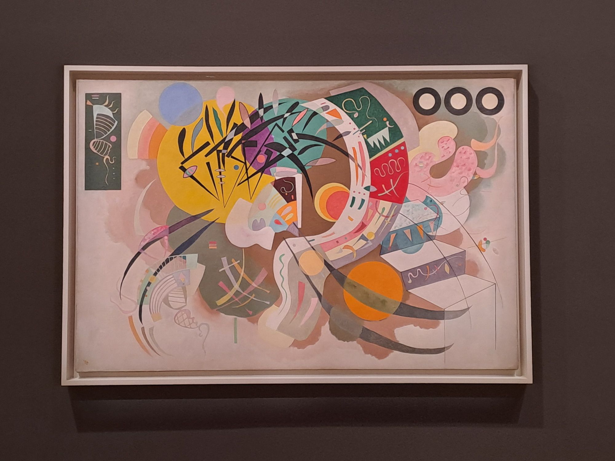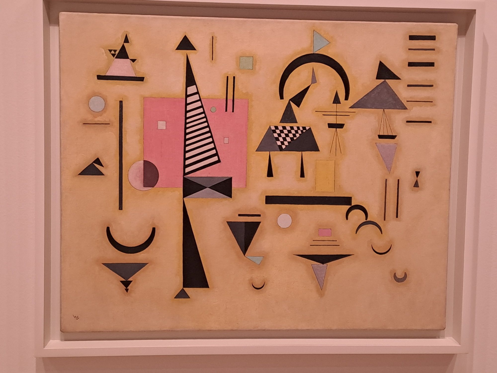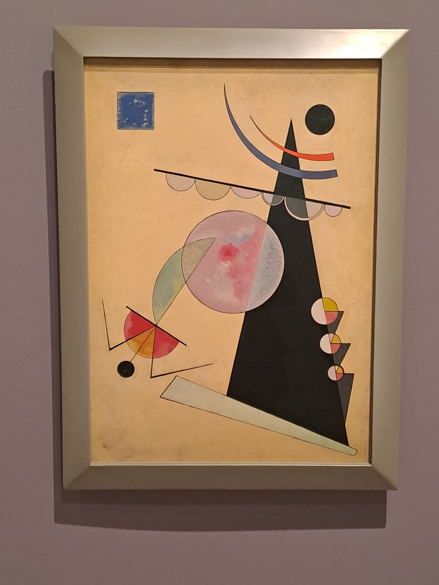 First here are some works by Wassily Kandinsky. You can see the evolution of his art from the expressionist landscapes of the early 20th Century to the highly influential abstracts from the Bauhaus period. I particularly love these compositions of simple geometric shapes – lines, circles, squares and arcs – with bold colours. They are fully abstract but also manage to suggest form and perspective and even movement in a way that fascinates me. After the Bauhaus period, Kandinsky seems to have used more organic shapes and softened the colour palette in a way that suggests a partial return to his artistic origins.