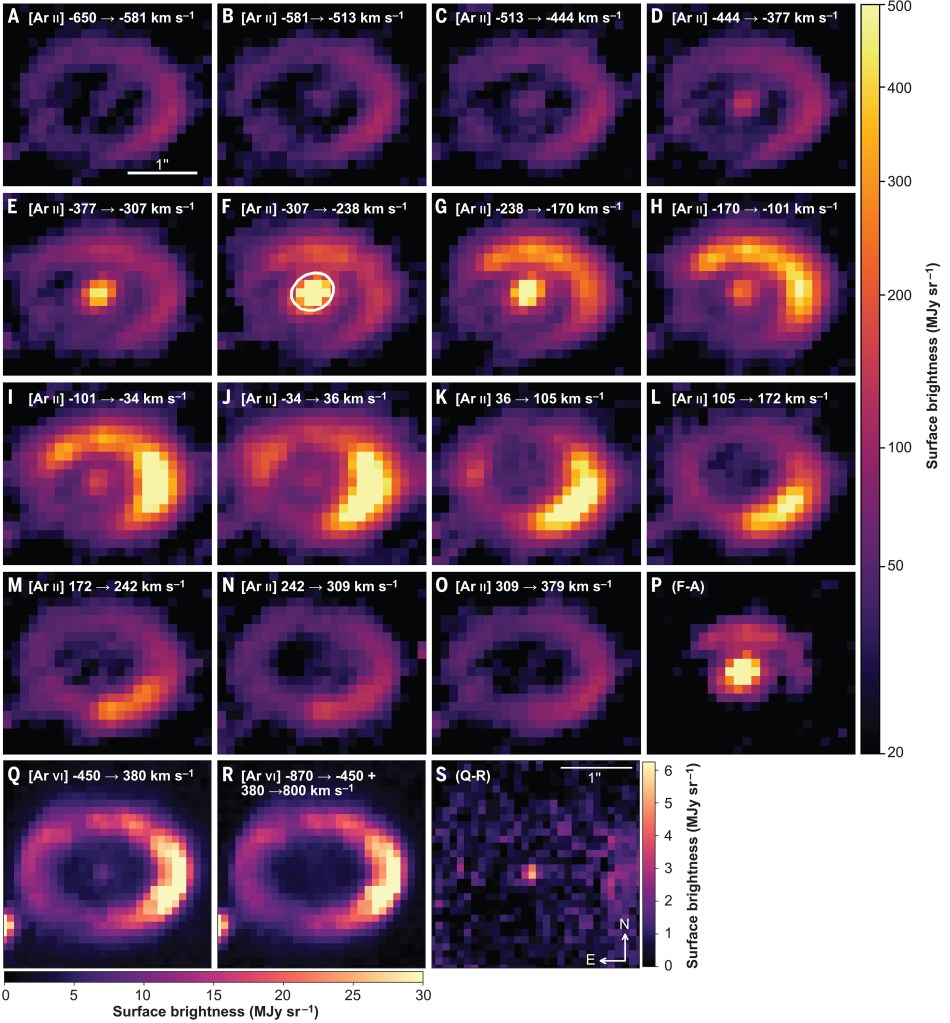 Anyway, this type of supernova should produce a neutron star or black hole sitting inside a ring-shaped remnant. The ring has been well studied, but in 37 years of observation the central object has not been detected. The results in the latest paper (by Fransson et al.) involve a spectroscopic study of the emission lines of ionized argon from the SN1987a remnant at sufficiently high spectral resolution to map the velocity structure. The results suggest that ionizing radiation from a neutron star is illuminating gas from the inner parts of the remnant.
