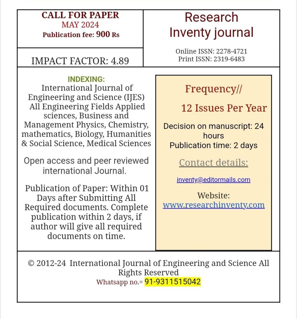 It is great to see the number of open access scientific journals increasing. Just yesterday I was contacted by another one that was previously unknown to me. The style of the advertisement leaves no doubt about the quality of this publication nor of the papers therein; from submission to publication within 24 hours, and all for 900 Rupees (about $10)! Amazing! There’s no question that this journal fills a much needed gap.