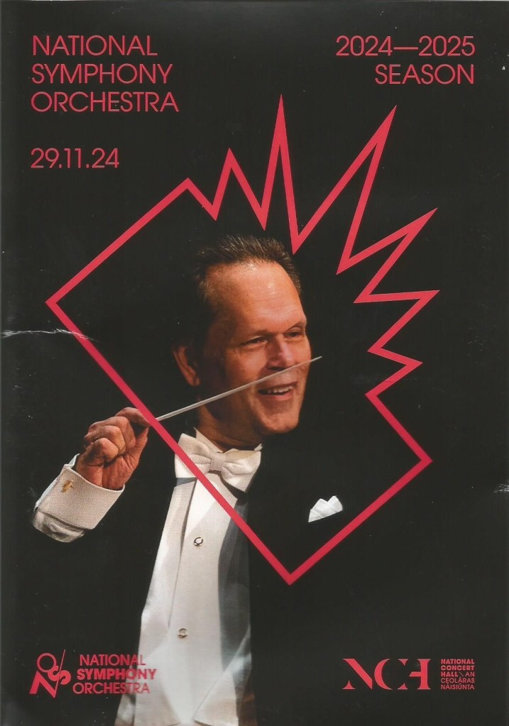 After a gap of a few weeks due to other commitments, last night I went to the National Concert Hall in Dublin to see and hear another programme of music performed by the National Symphony Orchestra. Unusually for these Friday evening concerts by the NSO, it wasn’t broadcast live or even, judging by the absence of microphones on and over the stage, recorded. I suppose that might have been for some contractual reason.