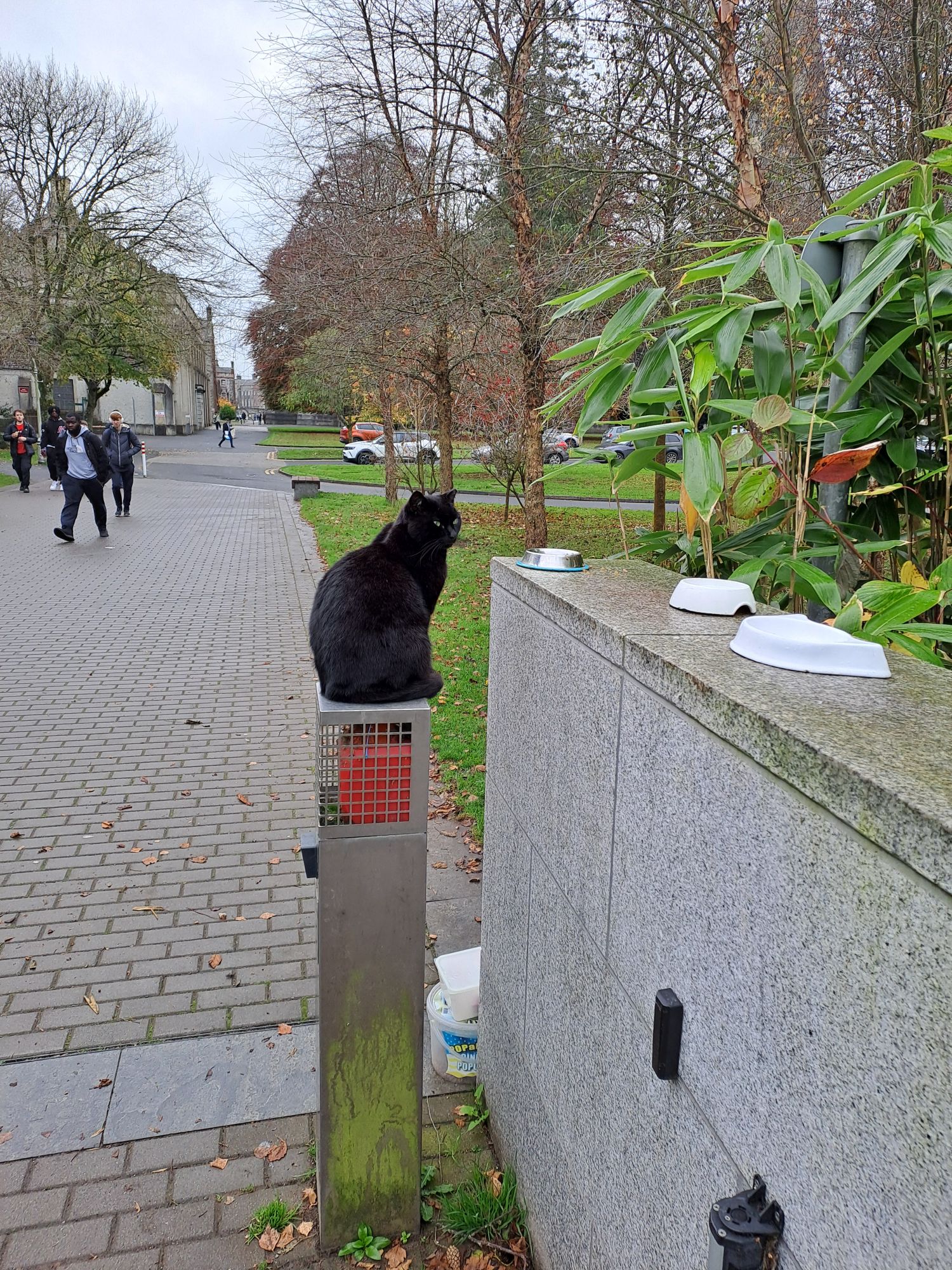 Maynooth University Library Cat was on post again today, staring at empty dishes to indicate that it was feeding time.