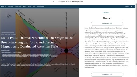 The first paper to report is: “Multi-Phase Thermal Structure & The Origin of the Broad-Line Region, Torus, and Corona in Magnetically-Dominated Accretion Disks” by Philip F. Hopkins (Caltech, USA). This was published on Monday May 12th in the folder Astrophysics of Galaxies. It presents simple accretion disk model that predicts the properties of many features including the dusty torus, broad-line region, continuum emission and coronal gas.