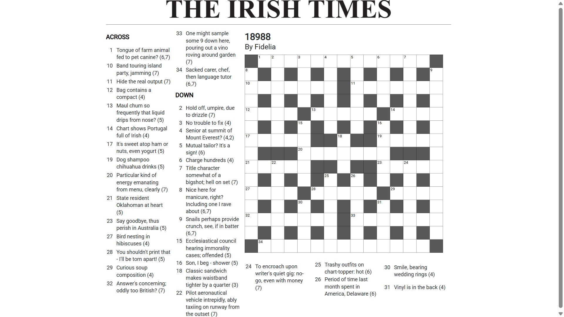 Anyway, here is Saturday’s puzzle (obtained from the Irish Times website)