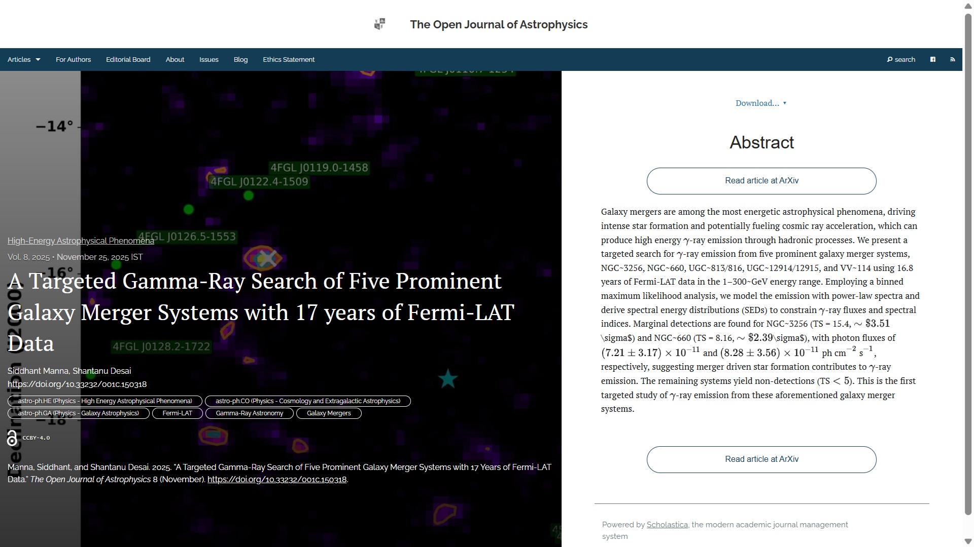 It’s Saturday again, so it’s time for the usual update of the week’s new papers at the Open Journal of Astrophysics. Publishing this week was interrupted by the Thanksgiving holiday in the United States, which meant there were no arXiv announcements yesterday. Nevertheless, since the last update we have published another four papers, which brings the number in Volume 8 (2025) up to 184, and the total so far published by OJAp up to 419.