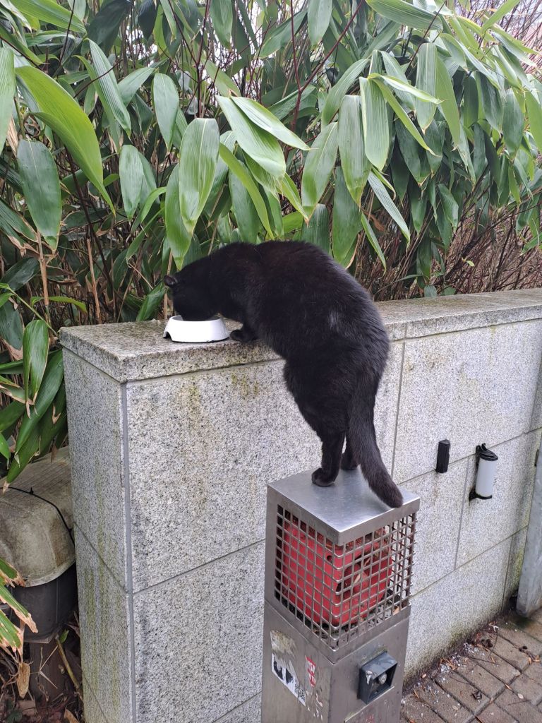Maynooth University Library Cat has endured the very cold weather we have had recently, but when I met him this lunchtime he was rather hungry. So much so that he scratched my hand in his eagerness to get at the food I put out for him…