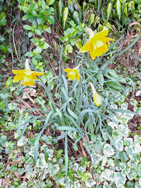 Well, today is St David’s Day so let me first offer a hearty “Dydd Gwŷl Dewi Sant hapus i chi gyd” (Happy St David’s Day to you all). Here is a picture of some daffodils amid the undergrowth in my garden:
