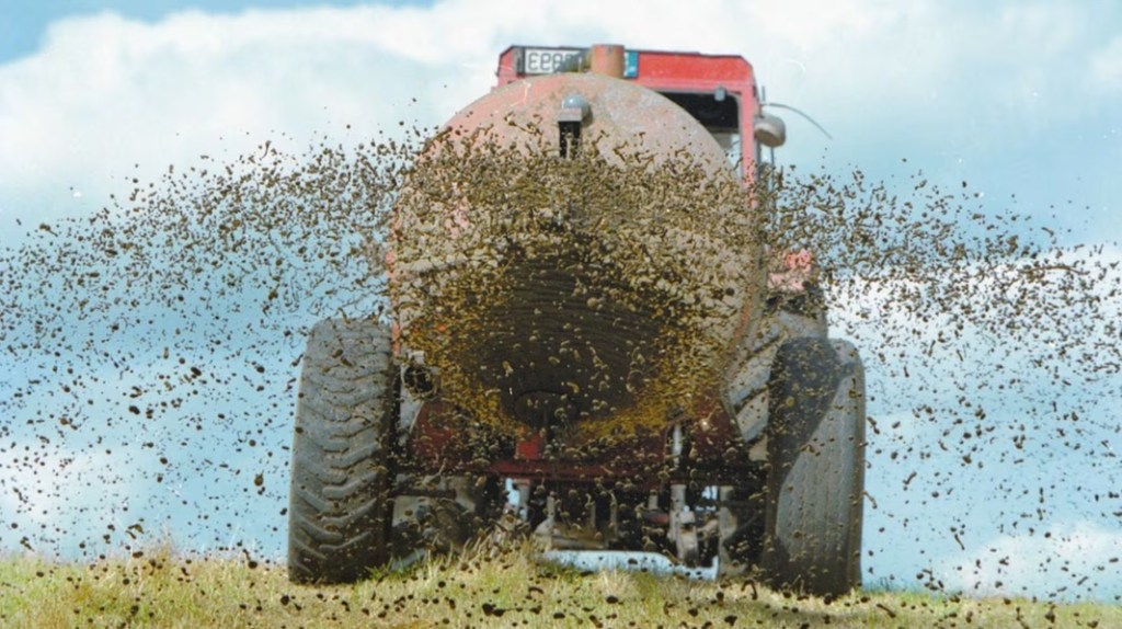 Of course the manure isn’t spread by hand nowadays. It’s done like this: