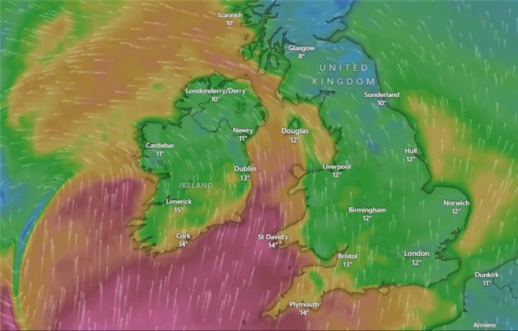 The weather is rather strange today, as a result of Storm Bram which is approaching from the South. The storm is bringing warm air with it, so the temperature is around 15°C which is very mild for December. The prevailing winds are usually westerly or south-westerly.