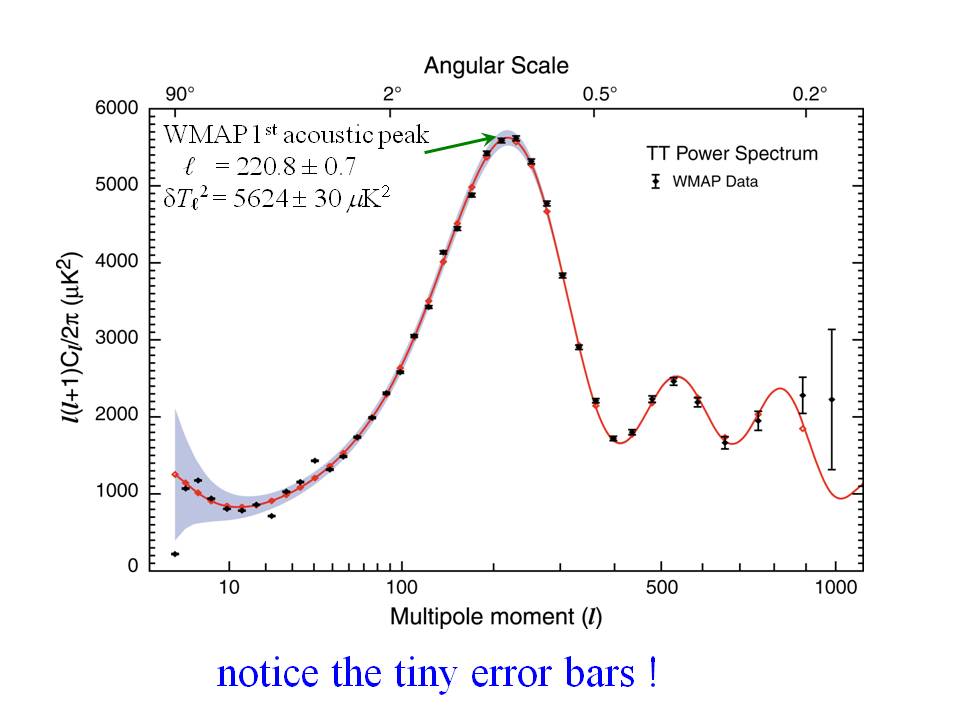 Let me show you a few slides from a presentation that Lung-Yih gave to me a while ago. For a start here is the famous power-spectrum of the temperature fluctuations of the cosmic microwave background which plays an essential role in determining the parameters of the standard cosmology: