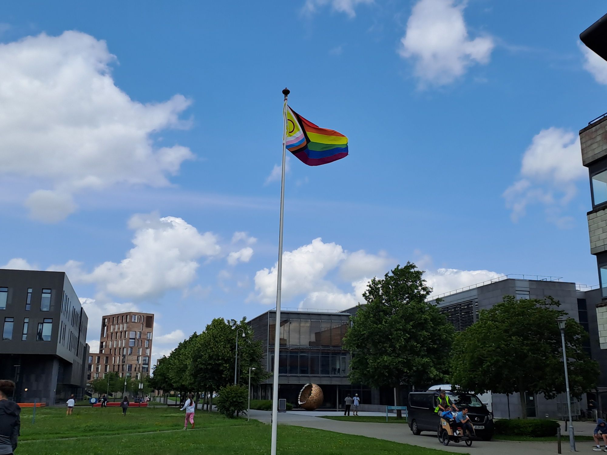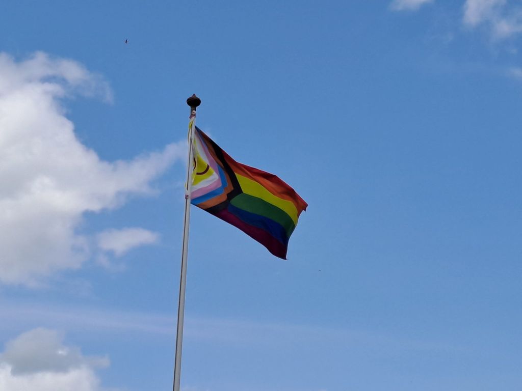 It’s 13th June, which means it’s almost halfway through this year’s Pride Month. I’ve been so busy that I am very late in posting about Pride 2025. I usually post something to mark Pride Month on 1st June (e.g. here). In fact I hadn’t even noticed the Pride Progress Flag flying on Maynooth Campus (between the Arts Block and John Hume Building) until today. I didn’t see anything on Maynooth’s social media about Pride either. I didn’t see the flag yesterday when I left the Science Building and assumed it wasn’t there. It was however raining heavily so my view may have been obscured by the rain on my spectacles, so I went back today to check. I am relieved it is there, as we need such symbols now more than ever.